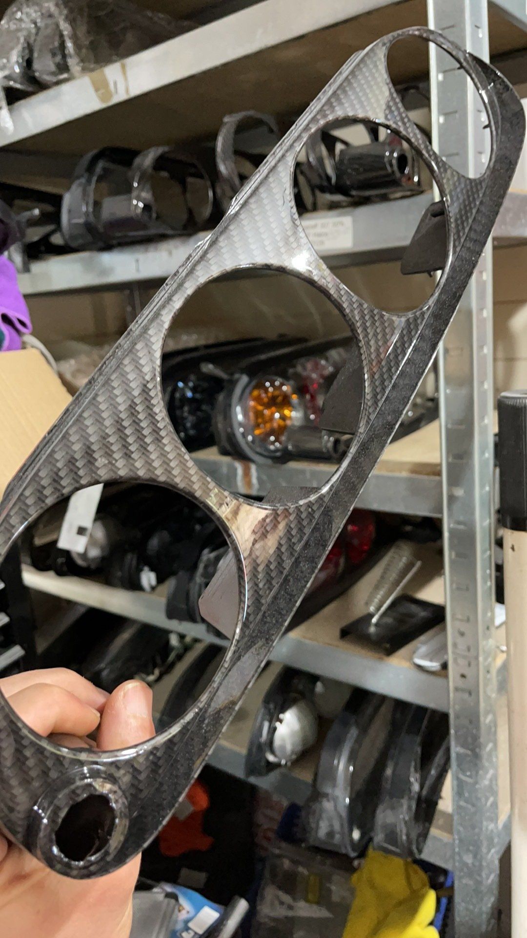 Die grauen Einfassungen sind in Kohlefaser lackiert oder mit Wasserbad getaucht